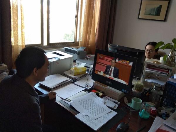 “40年春风化雨、春华秋实,改革开放极大改变了中国的面貌、中华民族的面貌、中国人民的面貌、中国共产党的面貌。”直播期间各党(总)支部师生党员认真聆听习近平总书记的报告,笔尖攒动记录着大会讲话要义。总书记的讲话深深打动了每一个干部群众,观看现场不时爆发热烈的掌声。