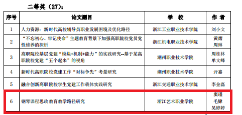 近日,浙江省高职院校党建研究会2019年年会评选获奖论文和优秀通讯员名单公布,我校4篇论文获奖,其中《高校纪委在推动“清廉校园”建设中的履责路径研究》(作者:徐芳、单烨)获一等奖,《钢琴课程思政教育教学路径研究》(作者:窦瑾、毛肄、吴婷婷)获二等奖,《高校学生党支部开展“两学一做”学习教育常态化制度化的探索——以欧美黑人巨大videos精品_欧美黑人巨大xxxxx_欧美黑人乱大交_欧美黑人乱大交_欧美黑人牲交videossexeso_欧美黑人添添高潮a片www_欧美黑人添添高潮a片www_欧美黑人性暴力猛交喷水黑人巨大某学生党支部为例》(作者:黄思远、谢志勇)、《构建艺术院校“课程思政”立体模式》(作者:许瑛)获三等奖。我校吕清华被评为优秀通讯员。