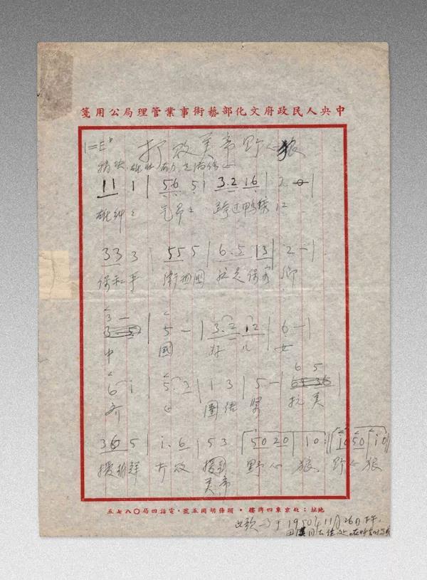 周巍峙为《中国人民志愿军战歌》谱曲的手稿