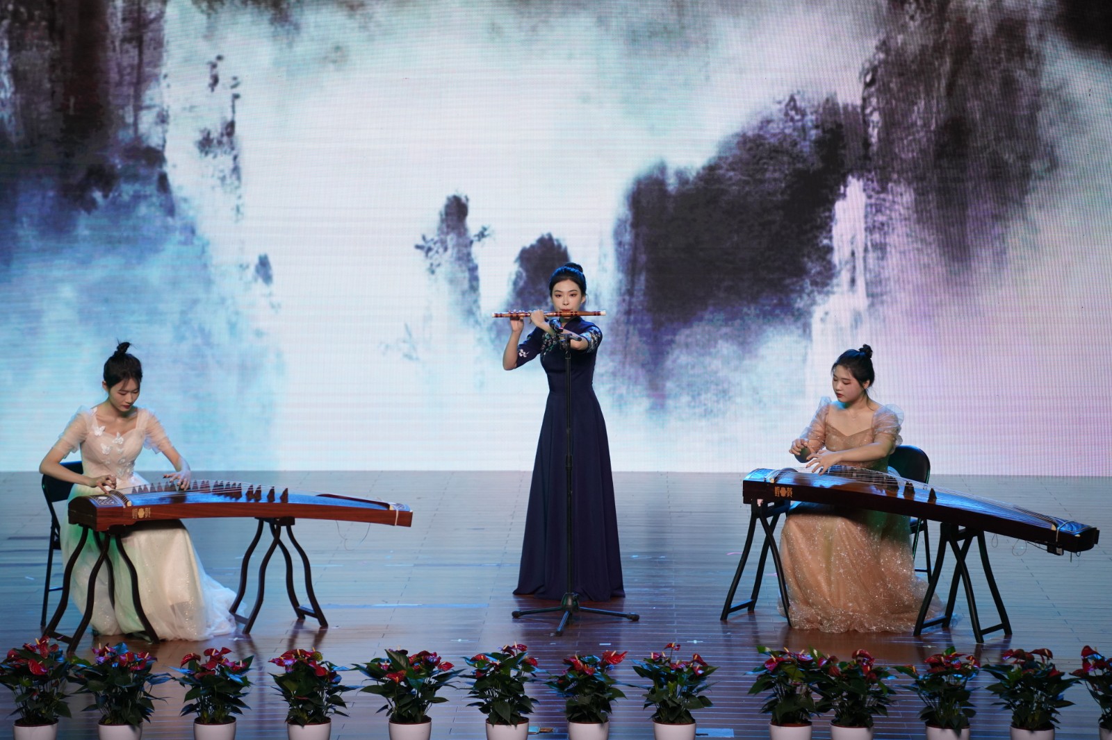 演出在激情洋溢的歌舞《我们年轻人》中拉开序幕,整台晚会分“惜取少年时”“花开正当时”“未来创造时”三幕,快板《祖国颂》、器乐合奏《春到湘江》、独唱《把一切献给党》等13个节目富有感染力,不仅点燃了在场观众的热情,也让大家感受到同学们对基层文化事业的热爱和成为一名基层文化员的信心与决心。