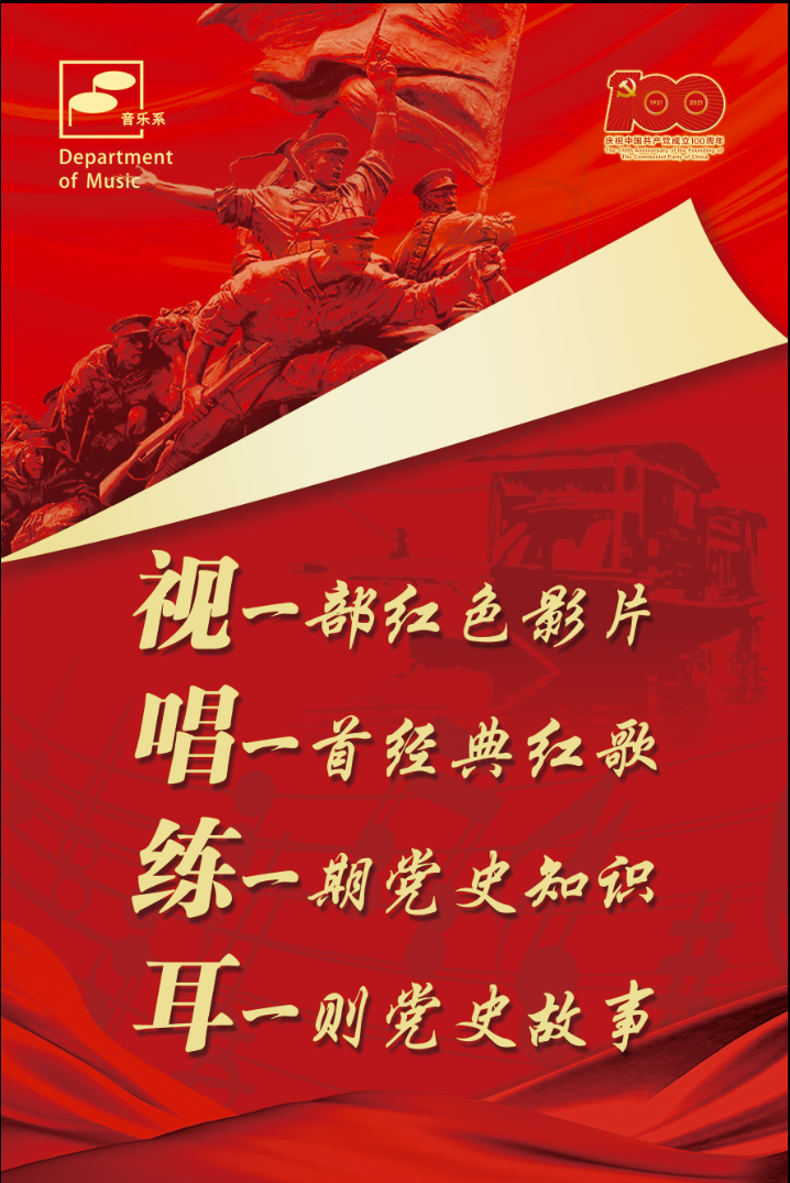 2021年是中国共产党成立100周年,百年征程波澜壮阔,百年历史初心不变。围绕献礼百年,音乐系利用专业特长,发挥自身优势,举办“视唱练耳”四个一主题活动,充分展现师生朝气蓬勃、奋发向上、百折不挠的精神面貌,不断激发师生爱党、爱国、爱社会主义的深厚情怀。