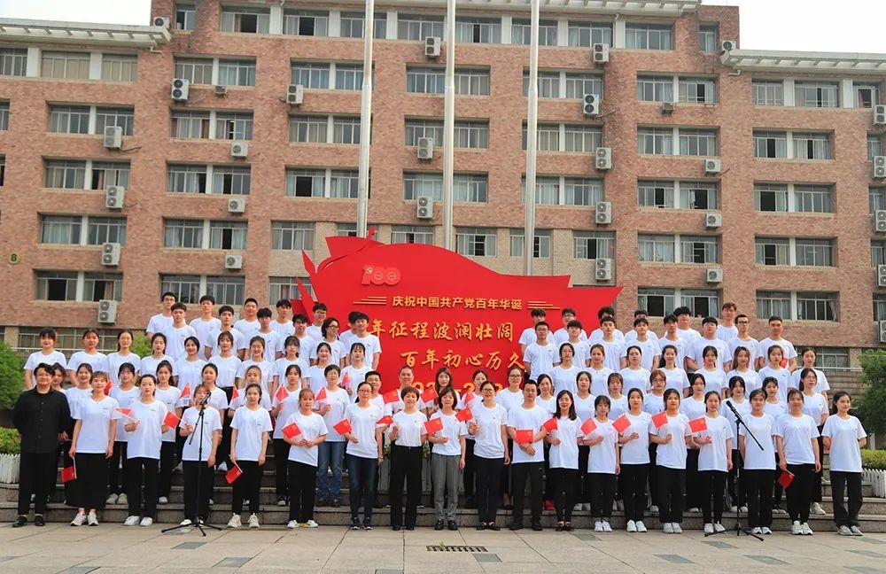 师生合唱《在灿烂的阳光下》,师生们用青春歌唱和赞颂祖国,唱出了共产党的伟大成就,也唱响了时代的主旋律。