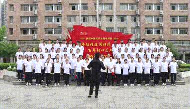 各班纷纷在党旗下进行“我与党旗合张影”,青春的面庞映衬着鲜红的党旗,越发耀眼。