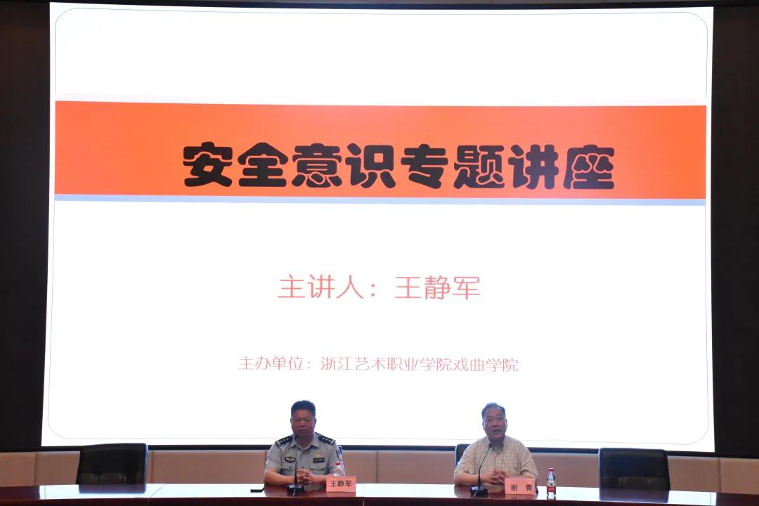 为提高全体学生安全意识,构建平安校园,5月9日上午,戏曲学院邀请杭州市公安局滨江区分局浦沿派出所王静军警官在图信中心报告厅开展安全意识专题讲座。戏曲学院全体学生到场聆听,戏曲学院党总支书记谢青主持讲座。