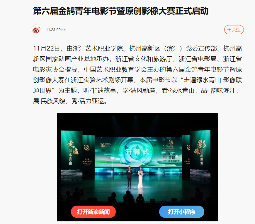 新浪新闻:第六届金鹄青年电影节暨原创影像大赛正式启动