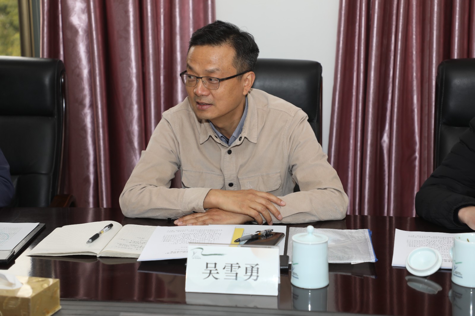 薛亮对吴雪勇一行的到来表示热烈欢迎。他从学校历史沿革、教育教学、产学合作、社会服务等各方面详细介绍了学校发展情况,并表示杭州国家版本馆作为保藏、展示国家版本资源的四大展馆之一,在服务公众、普及高品质文化等方面正在发挥着积极作用。学校非常期待能与国家版本馆开展系列合作,特别是在重大活动演出、实训基地共建、学术课题申报、传统文化普及等方面,希望双方未来有广阔的合作空间。