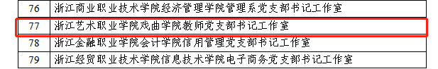 戏曲学院教工党支部是一个建立在学科基础上的支部,探索“一讲二融三服务”党建工作法,把党旗插在教育教学第一线,严格落实党内政治生活,以制度化建设、规范化建设、品牌建设等为主线,坚持育人导向,强化党员教育和管理,注重融合发展,推动支部工作提质增效。党员中,获文旅部通报表扬专家1人,全省优秀共产党员1人,多人获国家级省级教学成果奖、全国职业技能大赛优秀指导教师、浙江省教学能力比赛二等奖、浙江省大学生职业规划大赛优秀指导教师等荣誉。建设国家级精品课程1门、文旅部科研项目1项,主编出版国家规划教材1本,连续3年获得国家艺术基金项目,牵头制定戏曲表演职业教育国家教学标准。这是一支致力于用戏曲艺术传播中华优秀文化、传承红色基因、传递社会责任,彰显浙艺“黄龙精神”,有战斗力、凝聚力,老中青结合的团结奋进的党员队伍。
