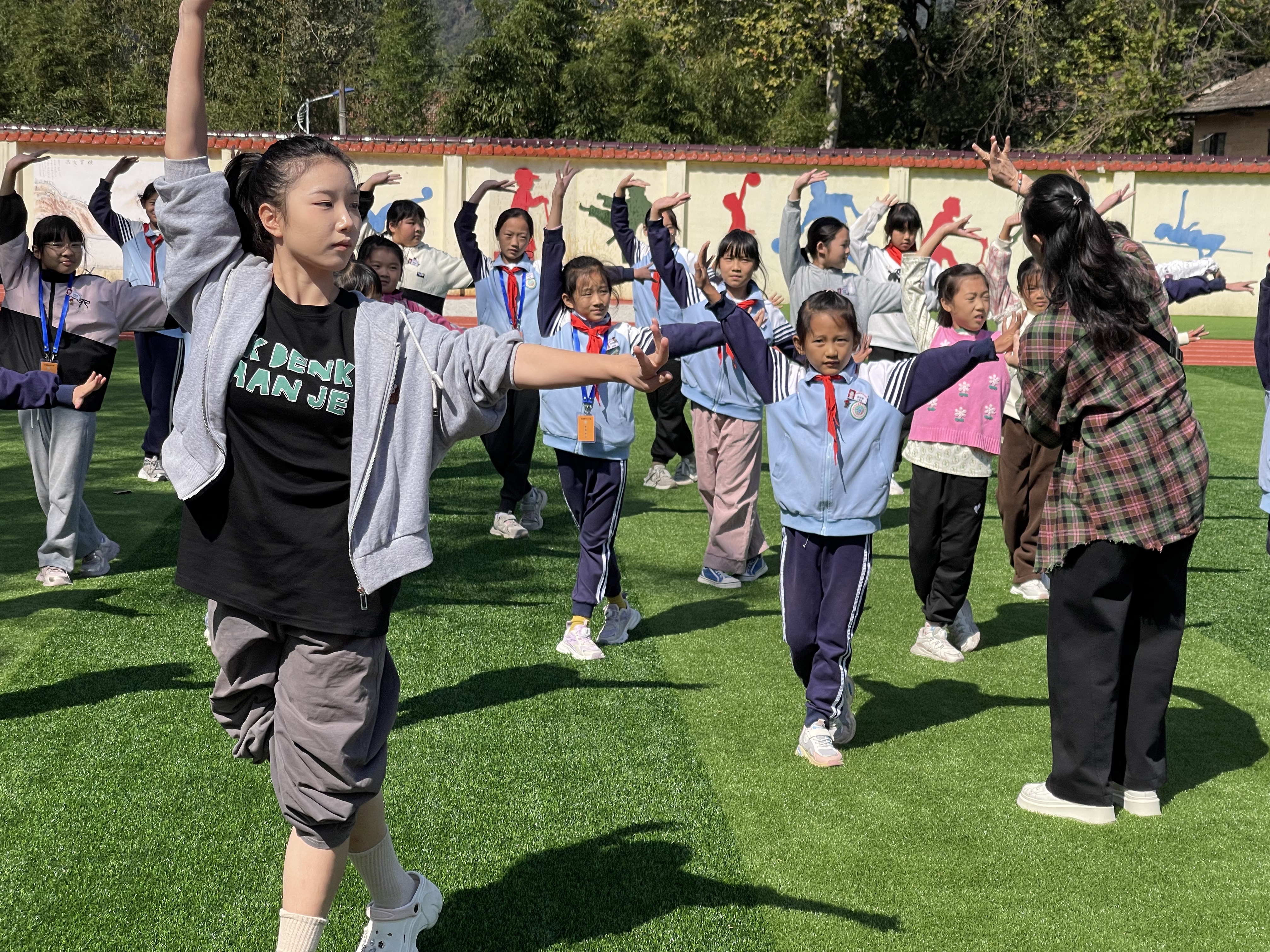 了解情况后,团队成员立刻深入实地,为同学们上了第一堂“浙艺牌”舞蹈基础课,并送上30套冬季舞蹈鞋服。在同学们的积极响应和欢声笑语中,老师们边教边了解,为今后镇小的舞蹈作品编排、启蒙课程设计、原生师资培养等工作打基础,与同学们约好了许多个“下一次”。