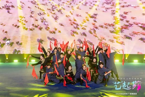 12月20日,“我在新时代文明实践阵地艺起舞——2024年杭州市广场舞展演活动决赛在杭州市滨江区举行。该活动由杭州市委宣传部(市文明办)、杭州市文学艺术界联合会主办,杭州市舞蹈家协会、杭州市文艺志愿者协会承办,杭州市滨江区委宣传部(文明办)、滨江区文学艺术界联合会协办。舞蹈学院原创广场舞《万马》代表滨江区舞蹈家协会参加了此次展演活动,并取得了金奖第一名的佳绩。