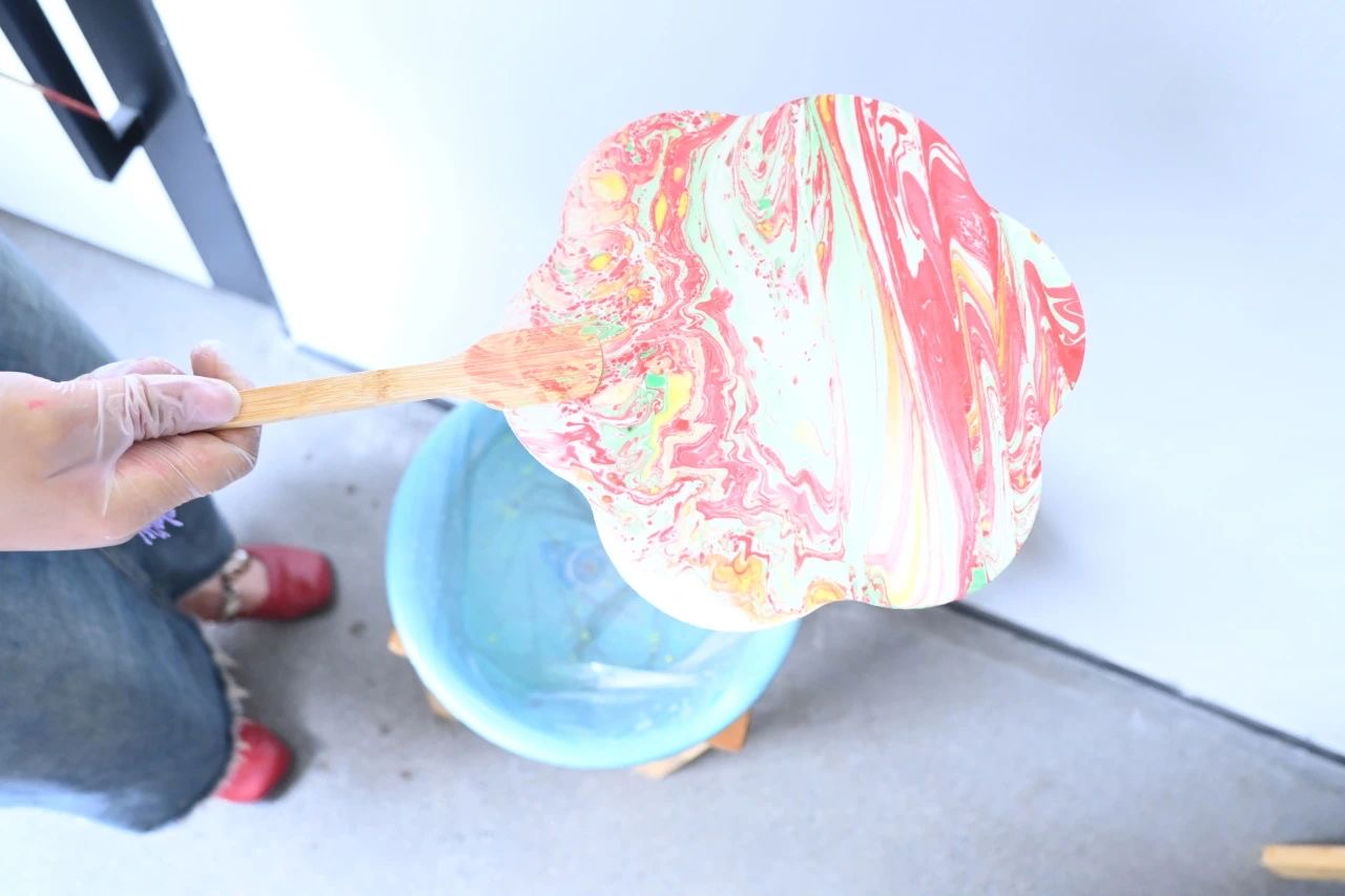 或绚烂多彩,或素雅清新,每一把漆扇都散发着东方美学的独特韵味。同学们纷纷和自己的作品合影留念,脸上洋溢着成功的喜悦和自豪。