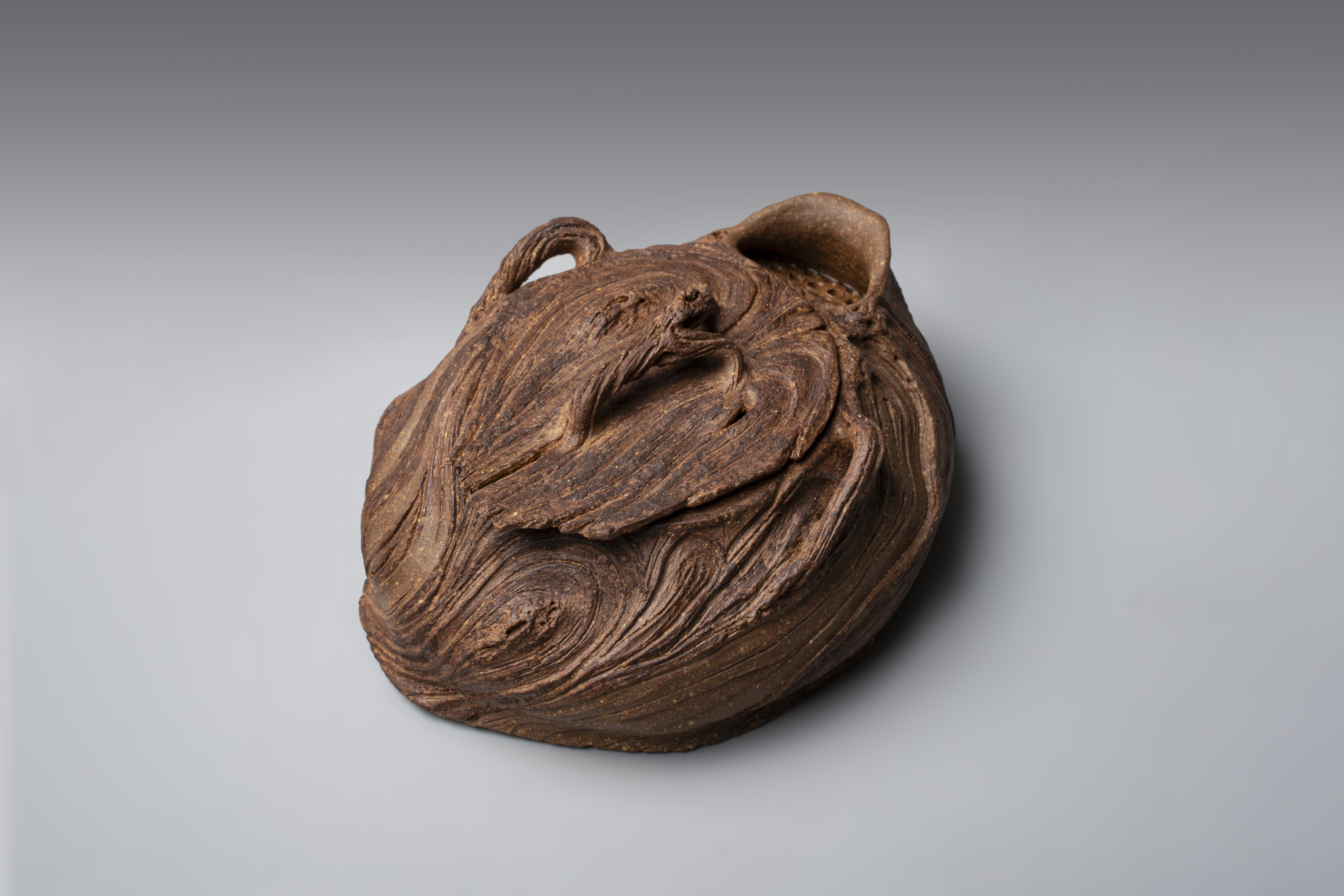 创作理念:黏土真的很神奇,因有水的加持,柔软似丝绸划过指尖,因有火的加持,又回归岩石般质地。创作者只有谦卑地顺应泥性,才能通过土的语言来表达。本次宝瓶的创作手法纯粹,只拉坯不修坯,尽可能保留创作痕迹而一气呵成。捉手是拉坯过程中的边角料率意堆砌,瓶身椭圆壶口向内边稍倾,看似随意的手法又尽量满足实用需求,盈盈一握,出汤利索,烤银后的金属质感又增添了一份现代气息,与写意的创作手法相得益彰,是创作者内心的一次浪漫之旅。
